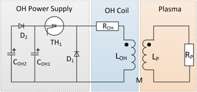 Figure 9. Conceptual design of OH power supply circuit. The plasma is simplified as a circuit with an inductor and a resistance connected in series.